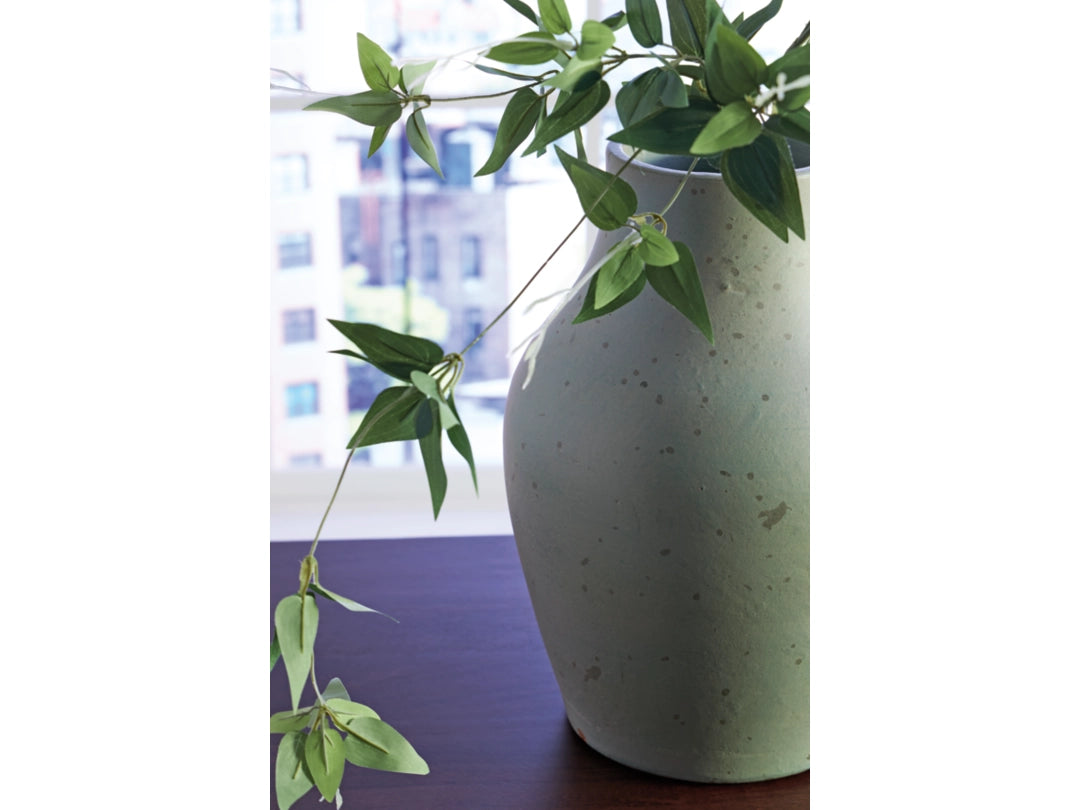 Bring a touch of rustic charm and casual elegance to your home with the Baychester terra cotta vase. An antiqued green finish gives it a beautifully weathered look, adding character to your creatively curated space. Let this piece shine on its own, or change things up and add faux florals or other decorative fillers.