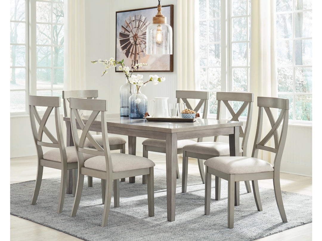 Bring a relaxed yet refined sense of good taste to a space with the Parellen dining room table. Clean-lined frame sports a gray finish that’s so easy on the eyes. Topped by a durable MEGA-TUFF® melamine surface, this table’s an easy-living alternative to traditional wood tables. And with the look of reclaimed barn wood, this table is an inspired choice for modern farmhouse living.