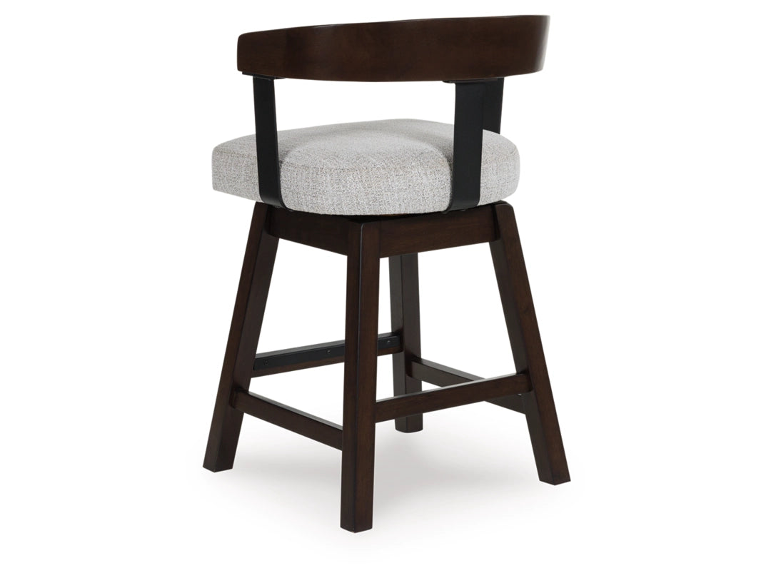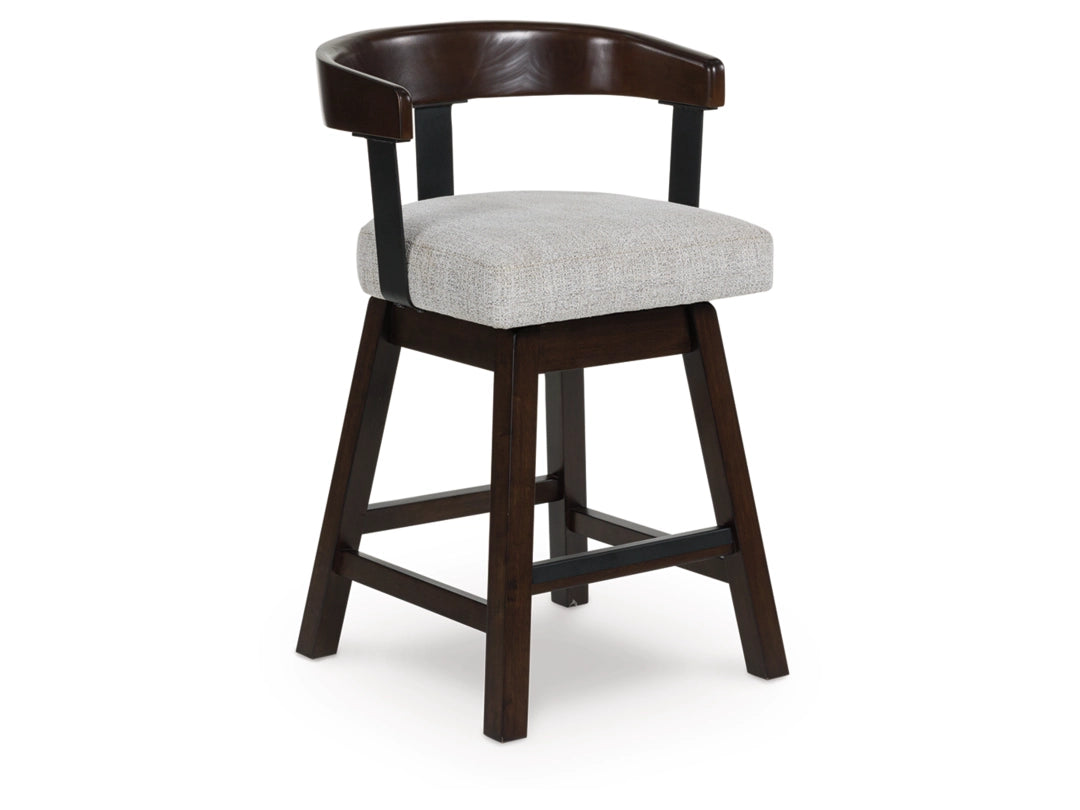 Modern sophistication, beautifully served. The Haddigan swivel counter height stool raises the bar with a cool, contoured back design and a comfortably cushioned seat. Dark and rich, the monochromatic finish enhances its sleek profile. A seamless 360-degree swivel feature offers functional appeal.