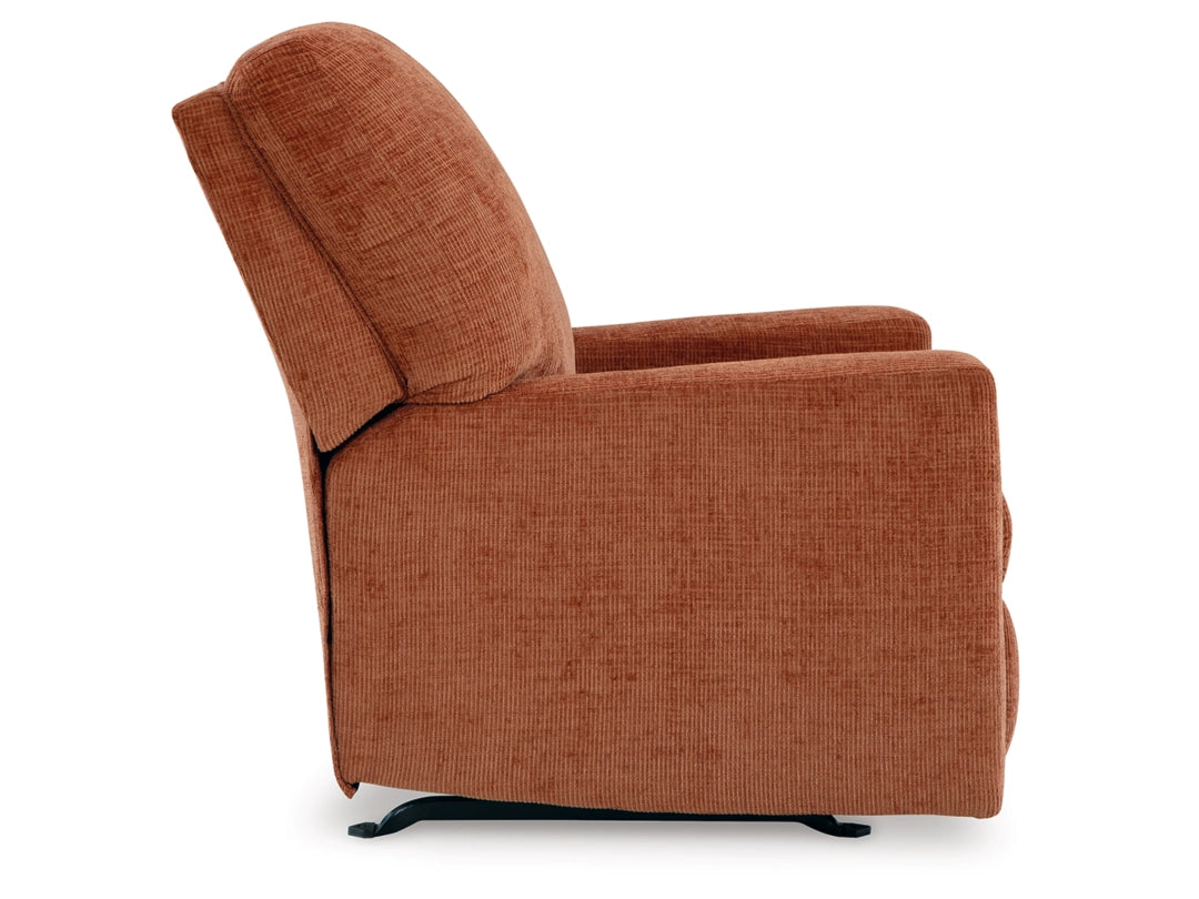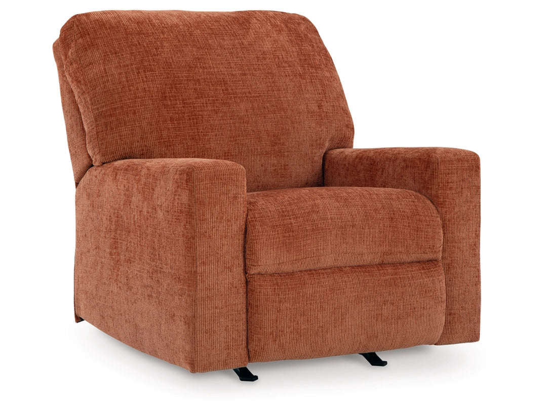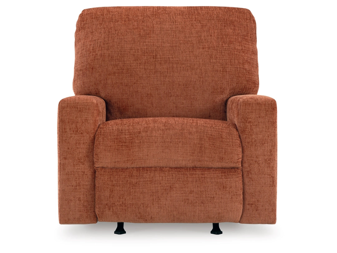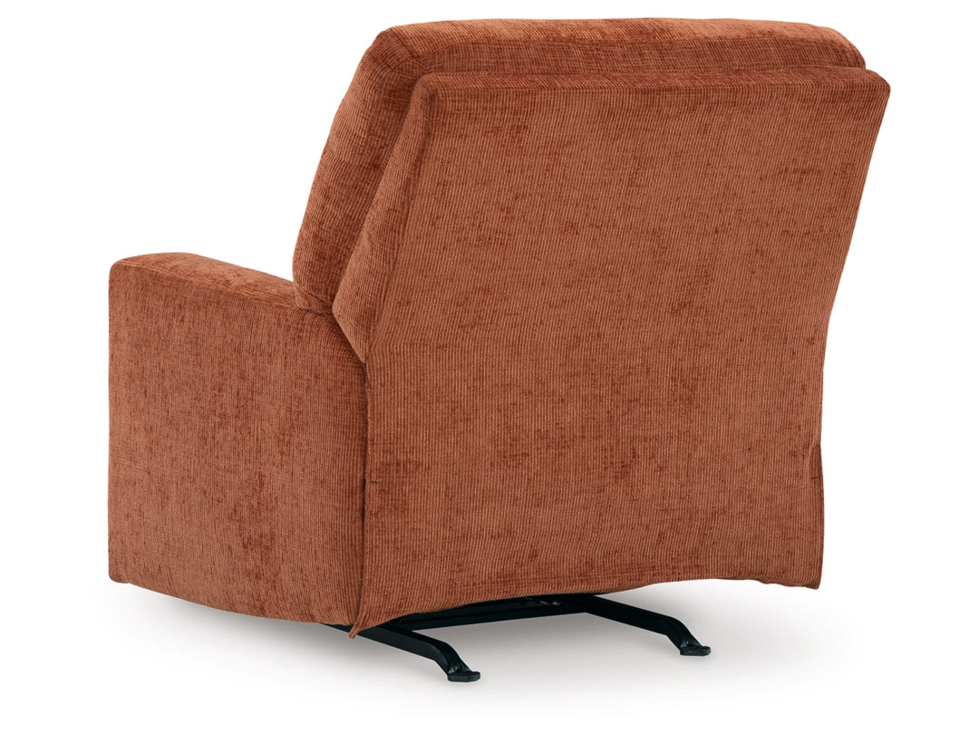 Looking to make a bold statement with color? Liven up your living room with the Aviemore rocker recliner. Its trend-right burnt orange upholstery adds a playful pop of color to your decor. Pairing posh style with everyday comfort, this piece is a welcome addition to contemporary spaces.