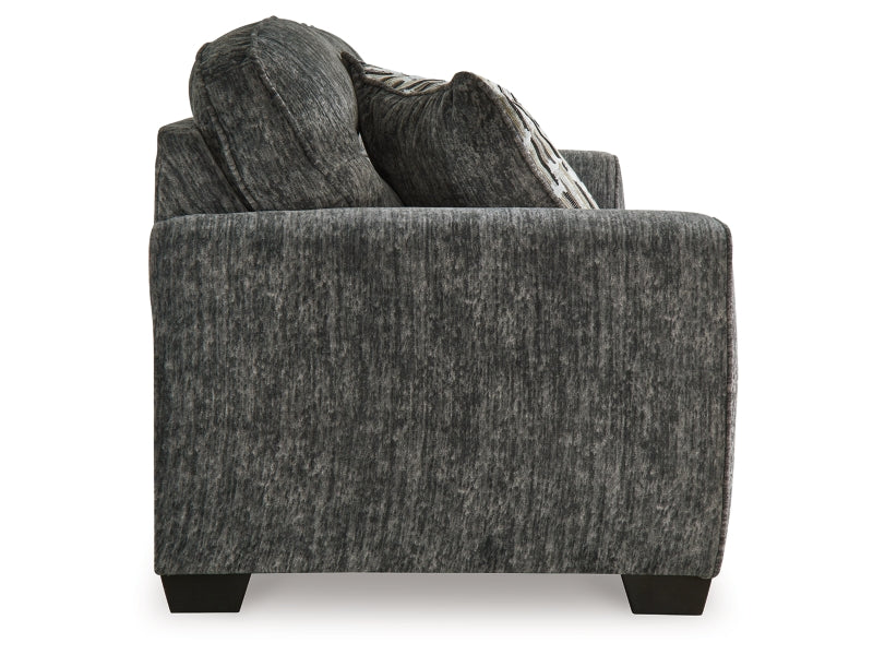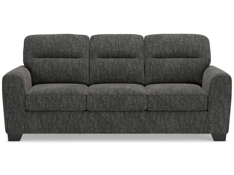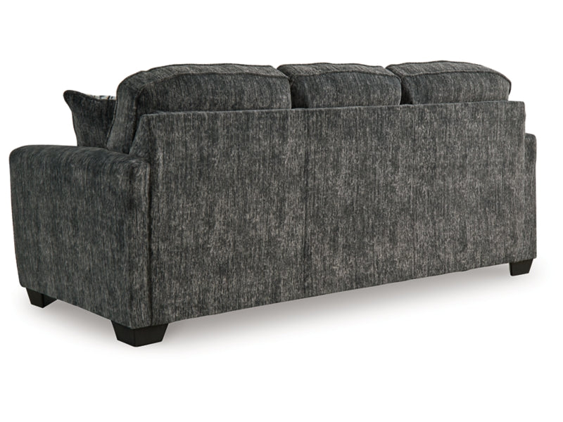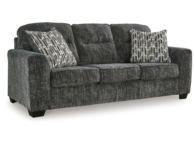 The Lonoke sofa speaks to those drawn to fresh, contemporary style with richly neutral appeal. Subtle and sophisticated, the plush upholstery and dark tri-block legs are a natural complement for so many color schemes. Two accent pillows make the seating even more welcoming. Curling up on this sofa to enjoy a night in is never out of the question.