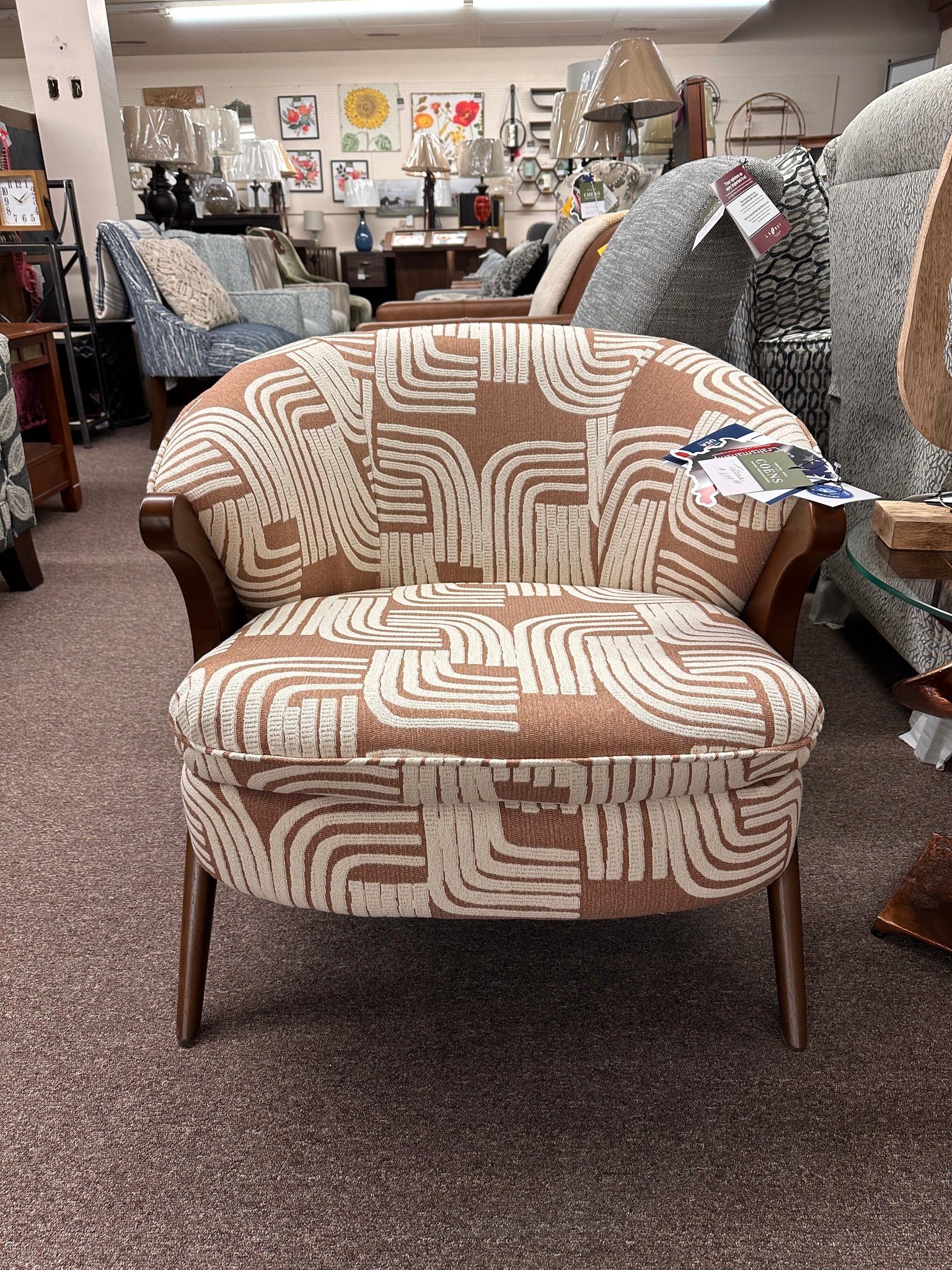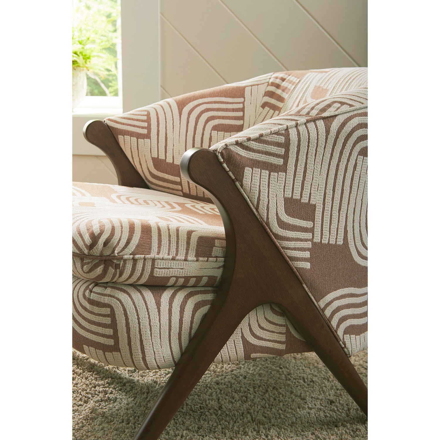 Sink back into this funky chair with bold backing. The Tatiana gives a contemporary spark to any room that needs a style upgrade. This retro accent chair comes in over 700 fabric choices for a customizable addition that will fit the style of any room. Choose a bold solid for a modern look or a neutral pattern for a more subdued feel. The sleekly designed wishbone shaped legs lends a touch of sophistication to this playful design - available in three finish choices.